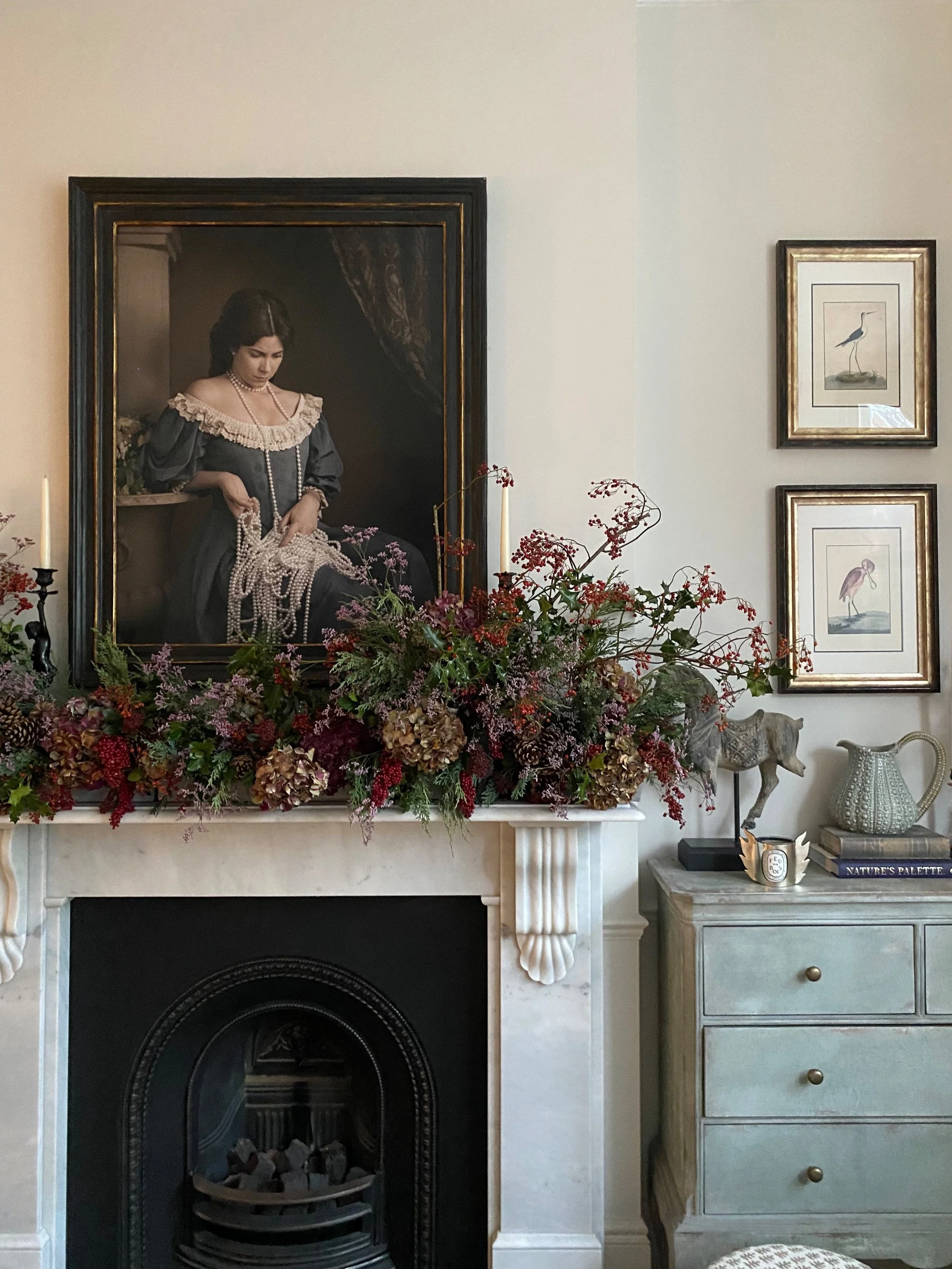 We design festive mantlepiece arrangements to create statement fireplaces in your home. Each arrangement is bespoke and designed to suit your chosen colour scheme and style, as well as the space it sits in. We use materials such as fresh winter foliage, rosehip branches, dried hydrangea seedheads, dried fruit and ribbons. Arrangements start from £250.00. Please get in touch here to discuss yours.